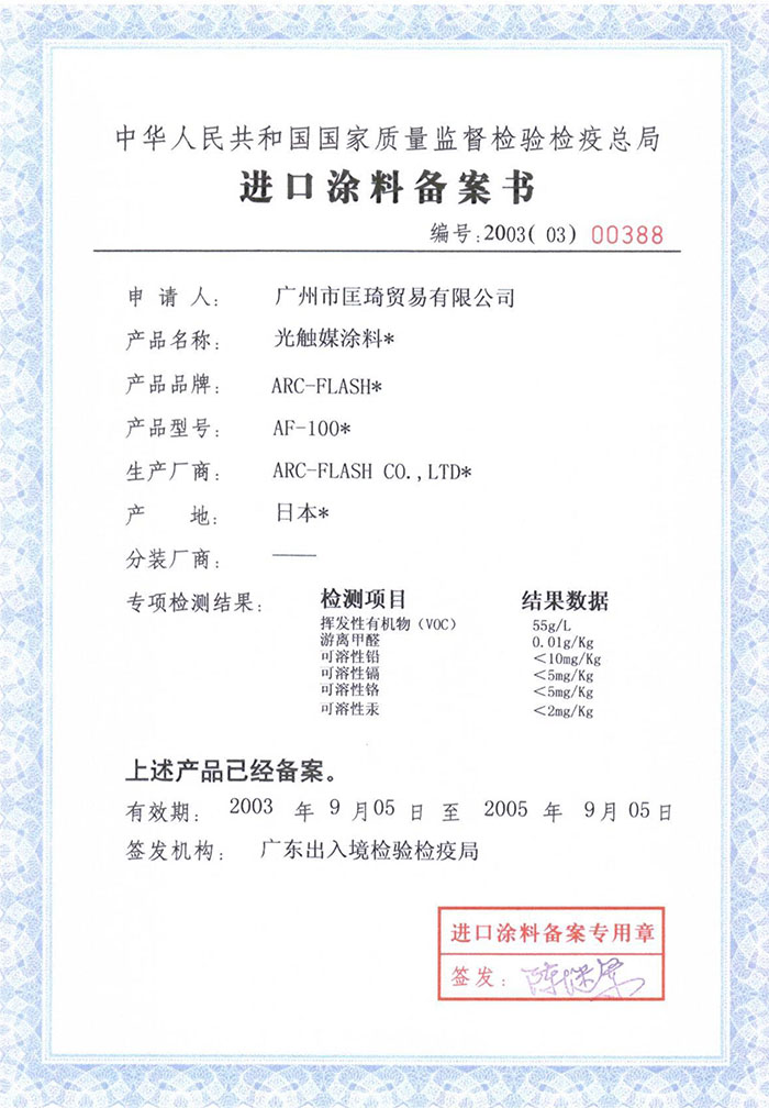 公司于2003年與日本AFC-furte光觸媒取得中、港、澳總代理權,并成功開發國內光觸媒市場,成為國內第一家以光觸媒產品治理環境的企業。